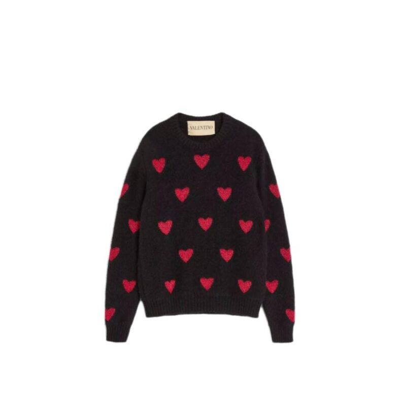 Mohair Wool And Lurex Sweater With Heart Jacquard Pattern