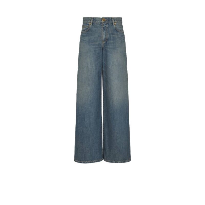 Wide-leg faded denim jeans
