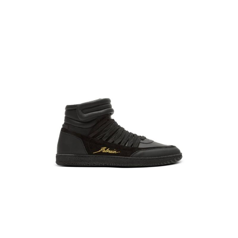 Leather Balmain Swan Mid-Top lace-up trainers