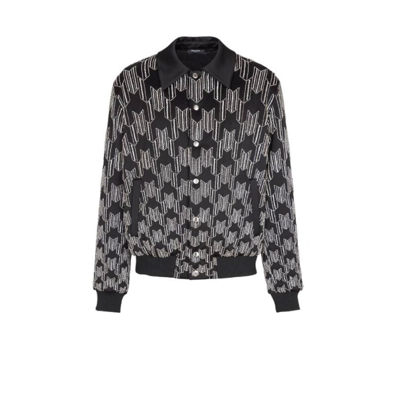 Satin bomber jacket with crystal embroidery