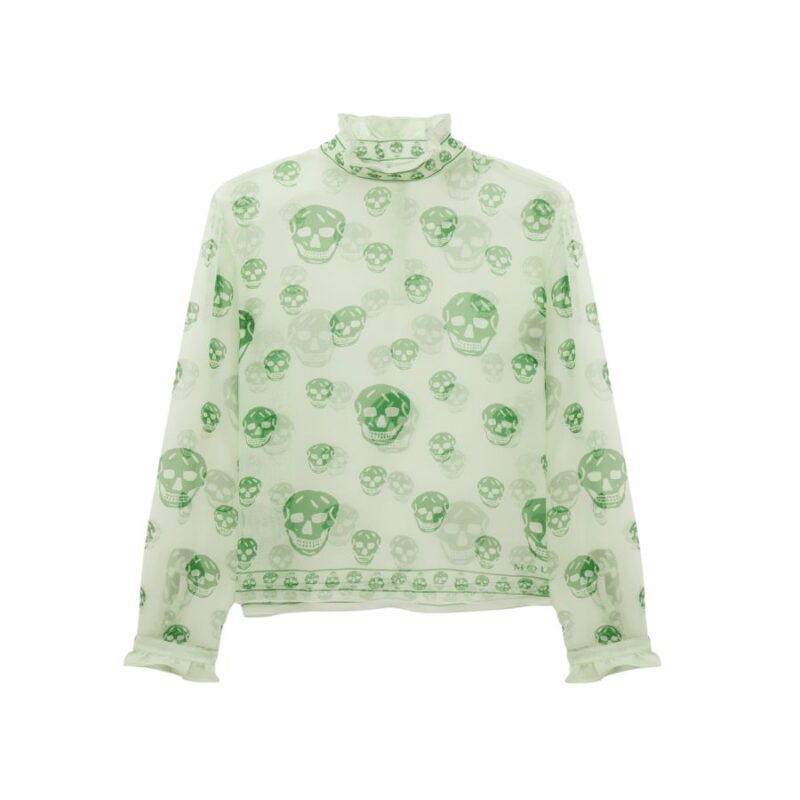 Men’s Silk Chiffon Skull Print Top in Light Green