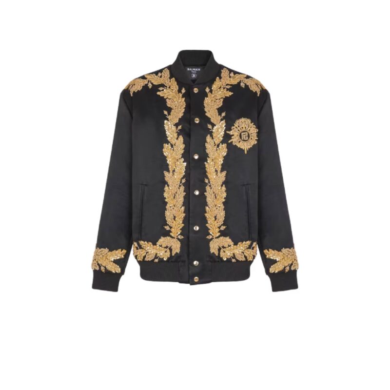 Embroidered cupro bomber jacket