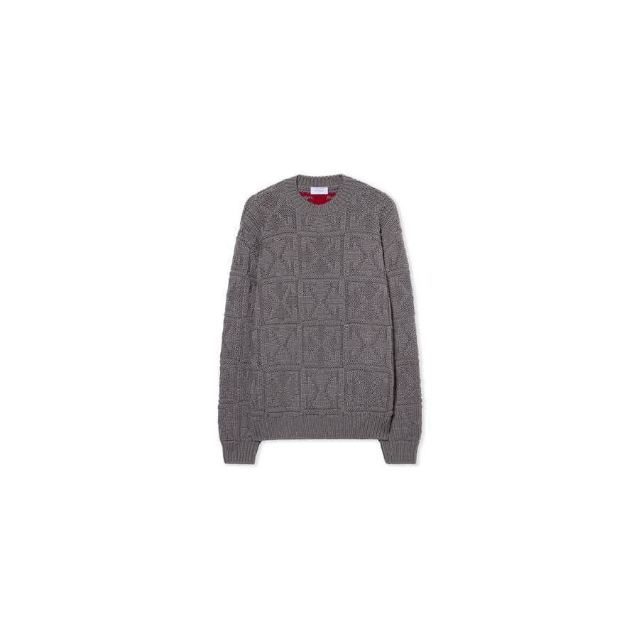 Textured knit sweater in premium fabric featuring 3D arrow stitch detailing.