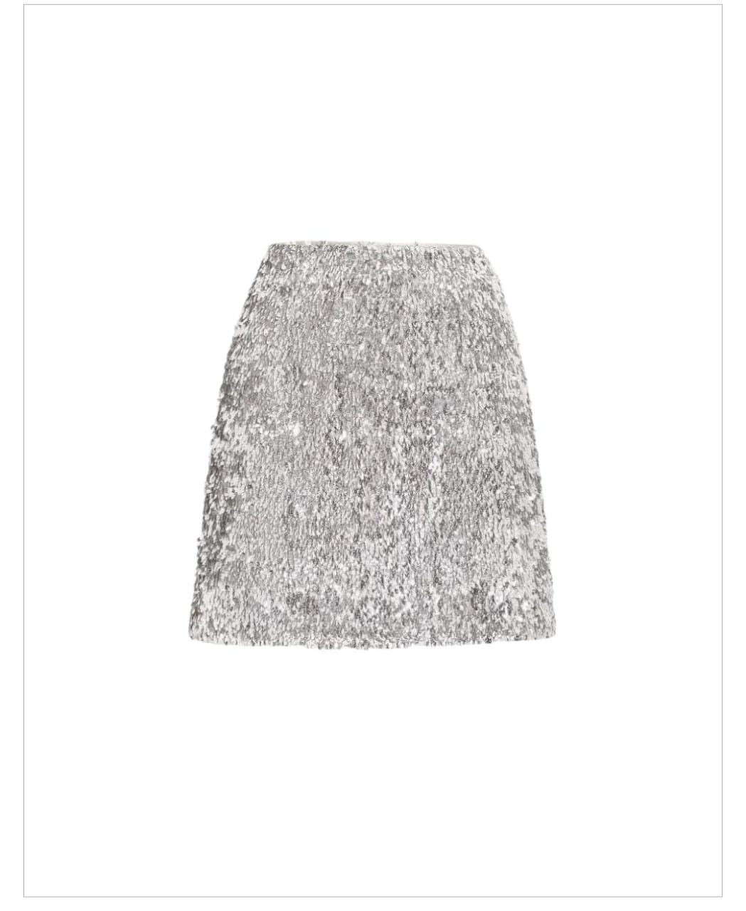 This low-rise skirt is a bold and sparkly piece that is perfect for those who like to stand out. Made with silver sequins, it is ideal for glamorous evenings and special occasions, where elegance meets the charm of contemporary fashion.