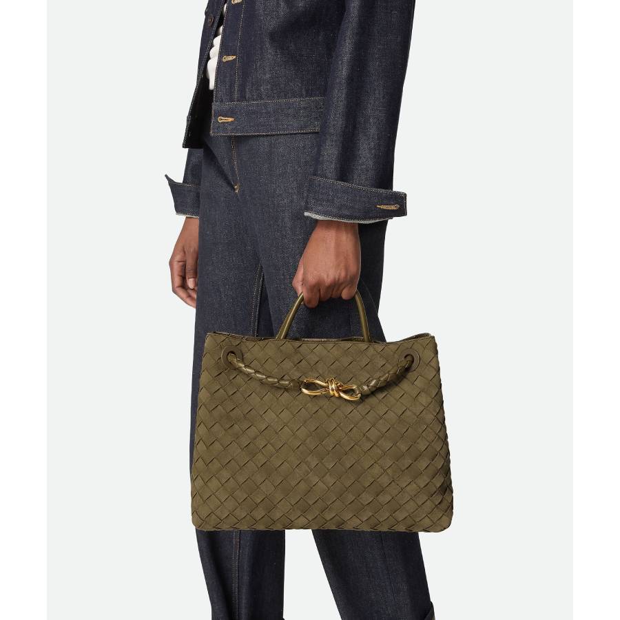 • Intrecciato suede top handle bag with sliding cross-body strap