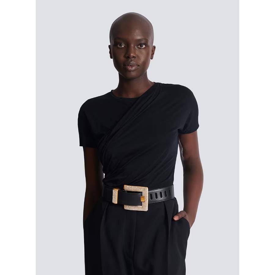 - Metal Balmain-engraved keeper loop