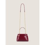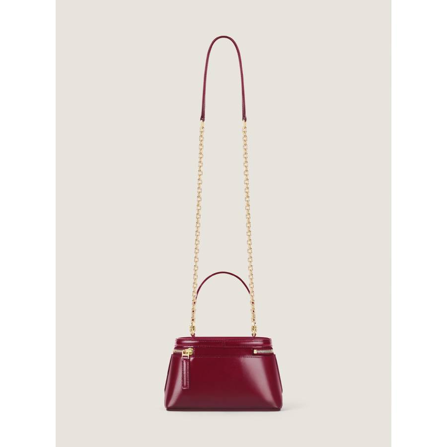 - Removable metal chain with leather reinforcement for crossbody carrying.