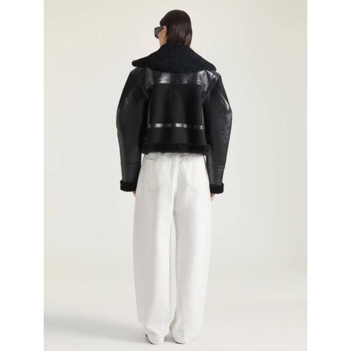 - Cuffs and hem in curly shearling.
