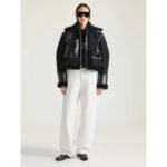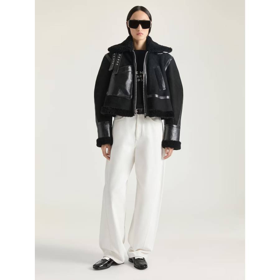 - Aviator jacket in shearling with leather details.