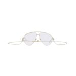 - Shiny gold-toned metal temples with engraved Gucci logo, clear end tips and gold-toned metal chain with Interlocking G logo on the adjustable closure