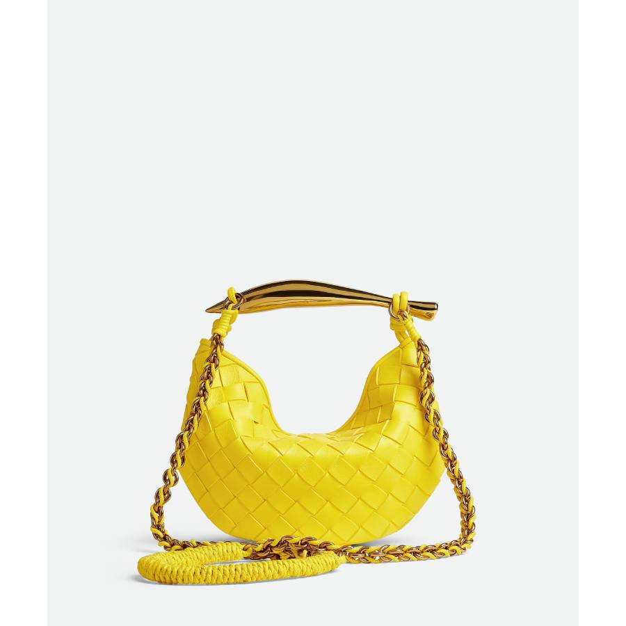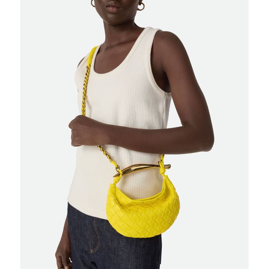 • Baby Intrecciato leather cross-body bag with tubular leather braided metal chain and metallic top handle