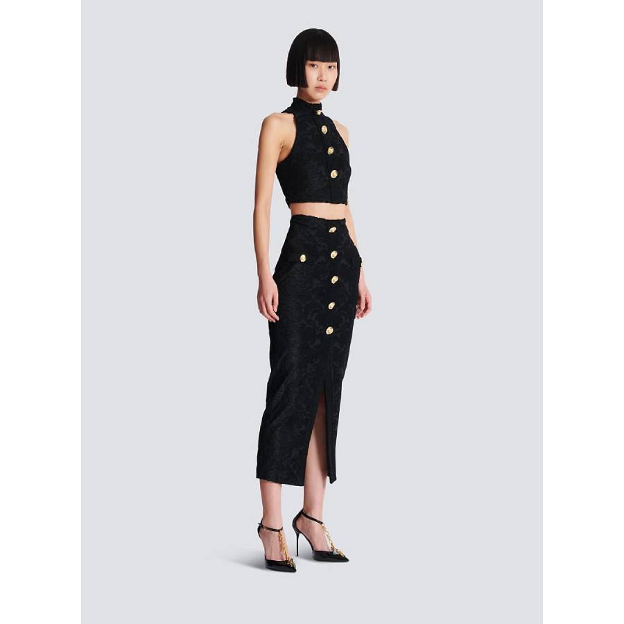 - Visible gold metal zip fastening on the back with Balmain Paris-engraved slider