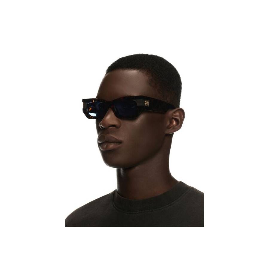 These acetate sunglasses playfully reinterpret a cat-eye silhouette with a thick, geometric frame, bold lines and exaggerated profiles. They are completed with milled sections that wrap onto the temples and inset arrow logo plaques on the arms. Made in Italy.
