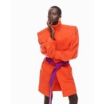 Home Women Clothes Coats & Jackets belted coat in stonewash silk satin