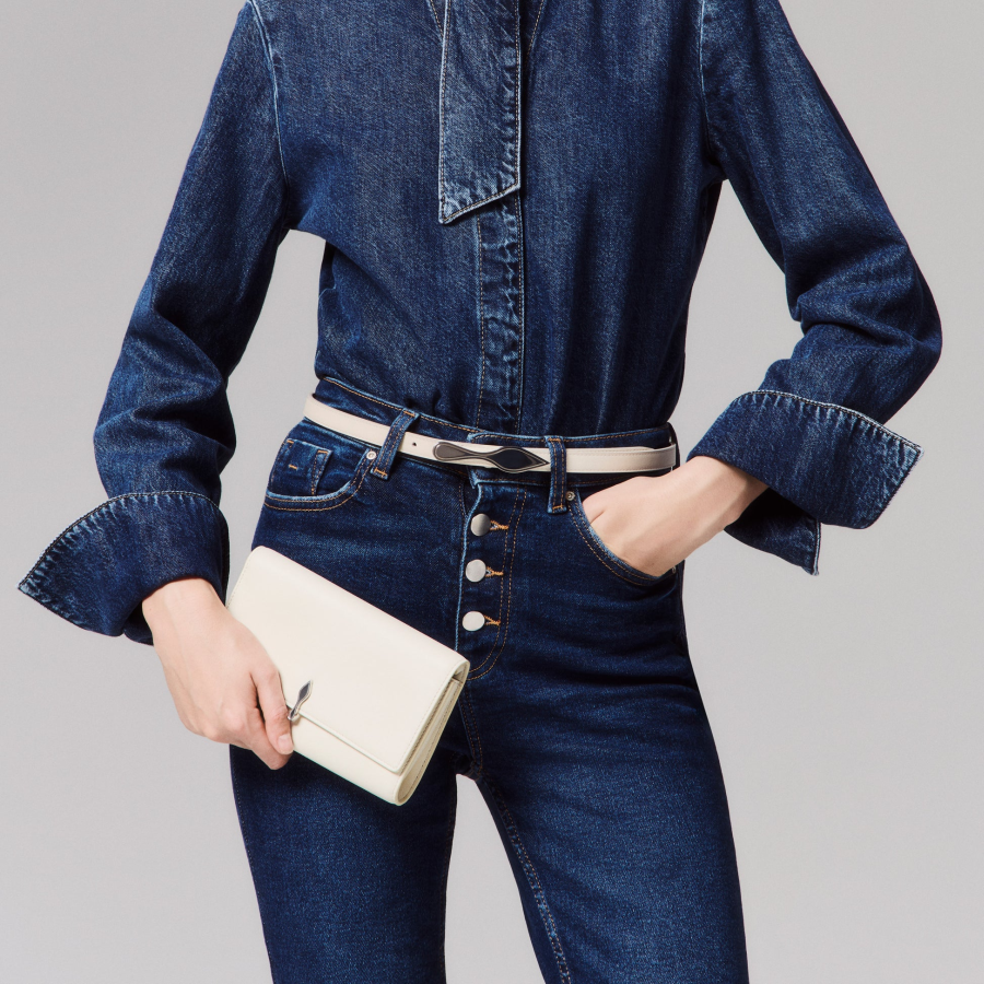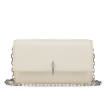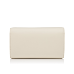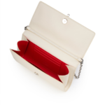 An iconic Maison Christian Louboutin model, the Bettina wallet on a chain boasts sophistication. Adorned on the front with a silver metal clasp evoking the silhouette of the iconic sole, this elegant model is made entirely from smooth Suzuran white lamb nappa leather. The nappa leather, with its semi mat aspect and slightly visible natural grain, exudes quality and offers a timeless and sophisticated look.