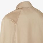 Blouson with a shirt collar and long sleeves with dropped shoulders and cuffs. Side pockets and breast pocket with zip. Metal zip fastening. Made of beige stretch gabardine. Customised with a palladium-metal micro FF logo applied on the front pocket.