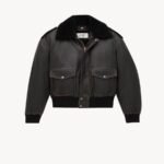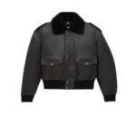 zip bomber jacket with a shearling collar, featuring drop shoulders, snap-button epaulets and ribbed trims.