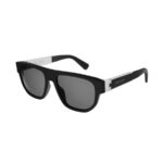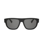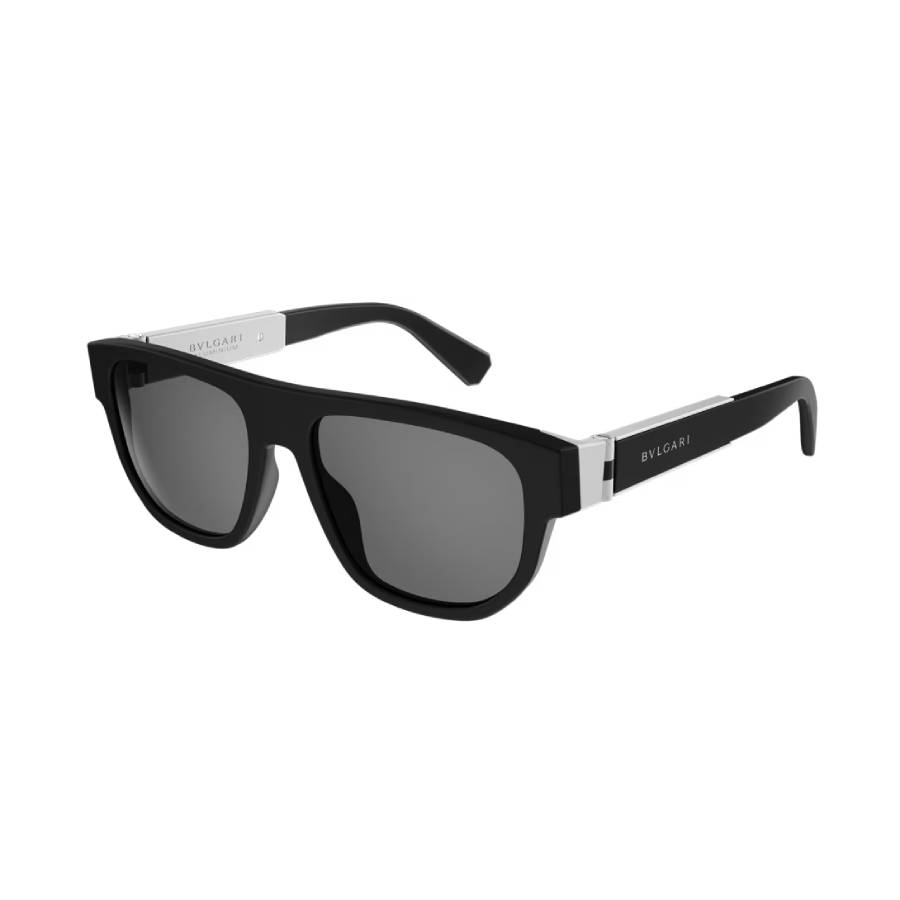 Bvlgari Bvlgari Aluminium rectangular sunglasses with matte black rubberised front and temples, aluminium hinge and grey polar lenses. A sporty casual style with a distinctive and contemporary appeal, inspired by the iconic Bvlgari Aluminium watch.