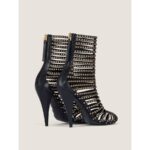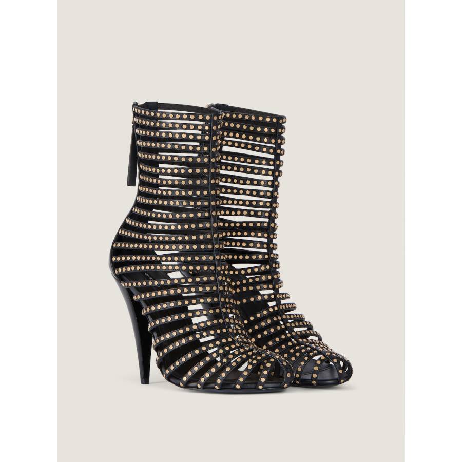 - Cut-out ankle boots in calfskin leather with studs.