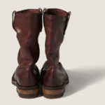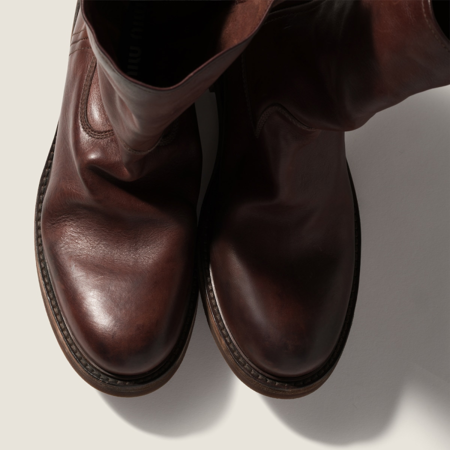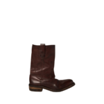 The rugged, relaxed construction of these workwear-inspired boots expresses an authentic, artisanal attitude. The leather, worked to achieve a cool, aged look, emphasizes the toe and the rubber and leather sole.