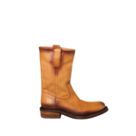 The rugged, relaxed construction of these workwear-inspired boots expresses an authentic, artisanal attitude. The leather, worked to achieve a cool, aged look, emphasizes the toe and the rubber and leather sole.