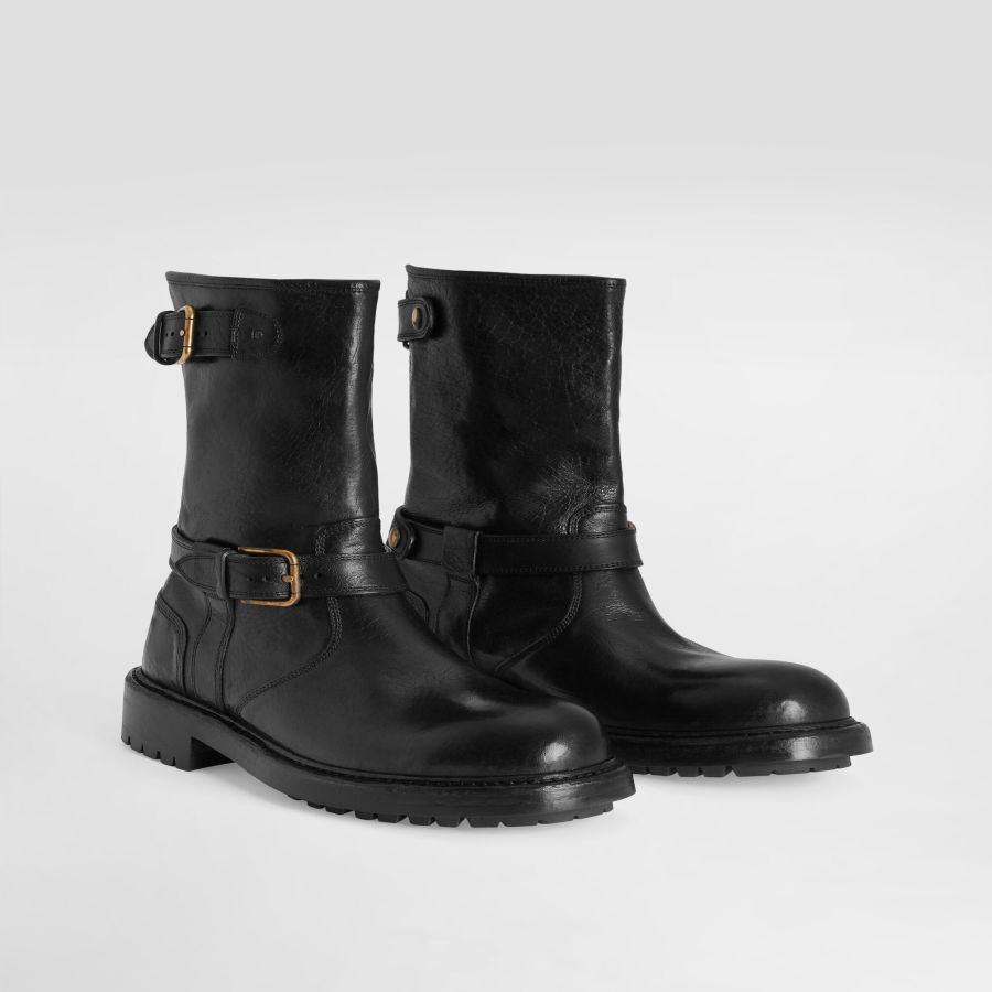 This biker ankle boot in horse leather combines casual style with high-quality details, ideal for those looking for a bold and versatile look.