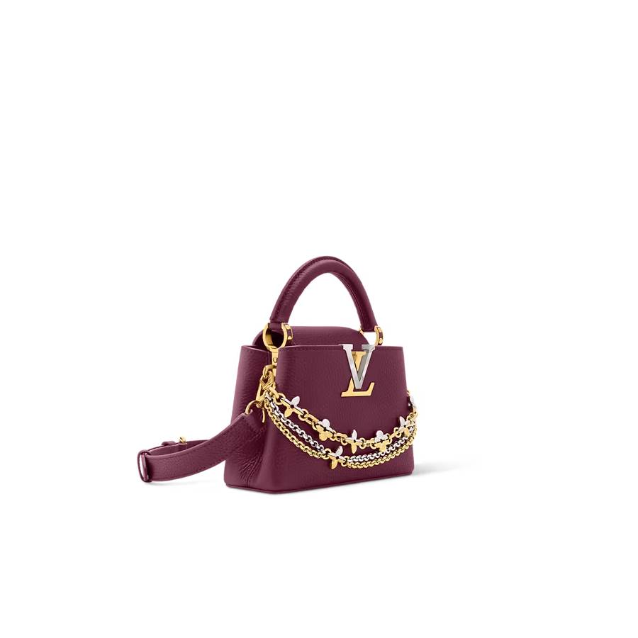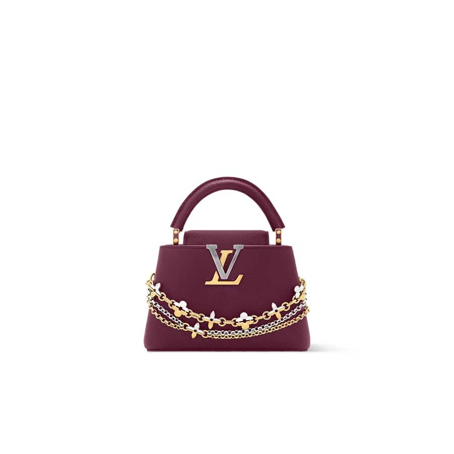 - Fits: smartphone, Capucines compact wallet, keys
