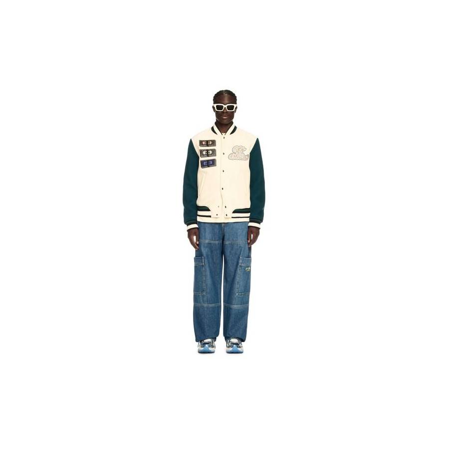 This varsity jacket is crafted from a wool blend and features a large script logo and cash stacks on the front and a matching graphic on the reverse. Made in Italy.