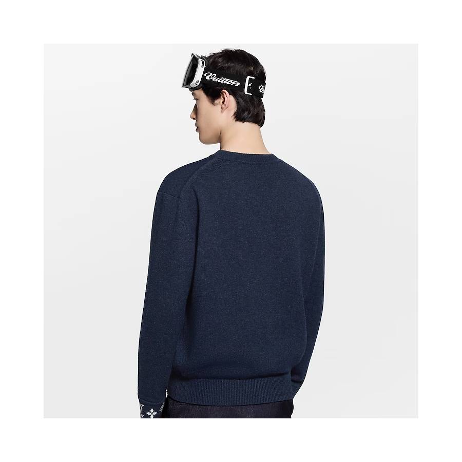 This timeless crewneck is crafted from pure cashmere for an exceptionally soft finish. Contrasting LV and Monogram Flower details are incorporated into the knit of the ribbed cuffs, creating a discreet signature accent. With its elegant dark blue color, this fine-knit pullover is a wardrobe essential that can complete any look.
