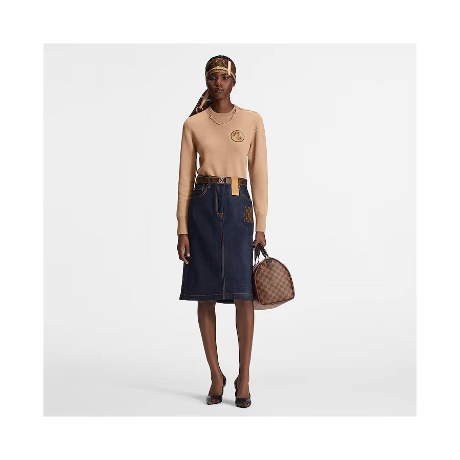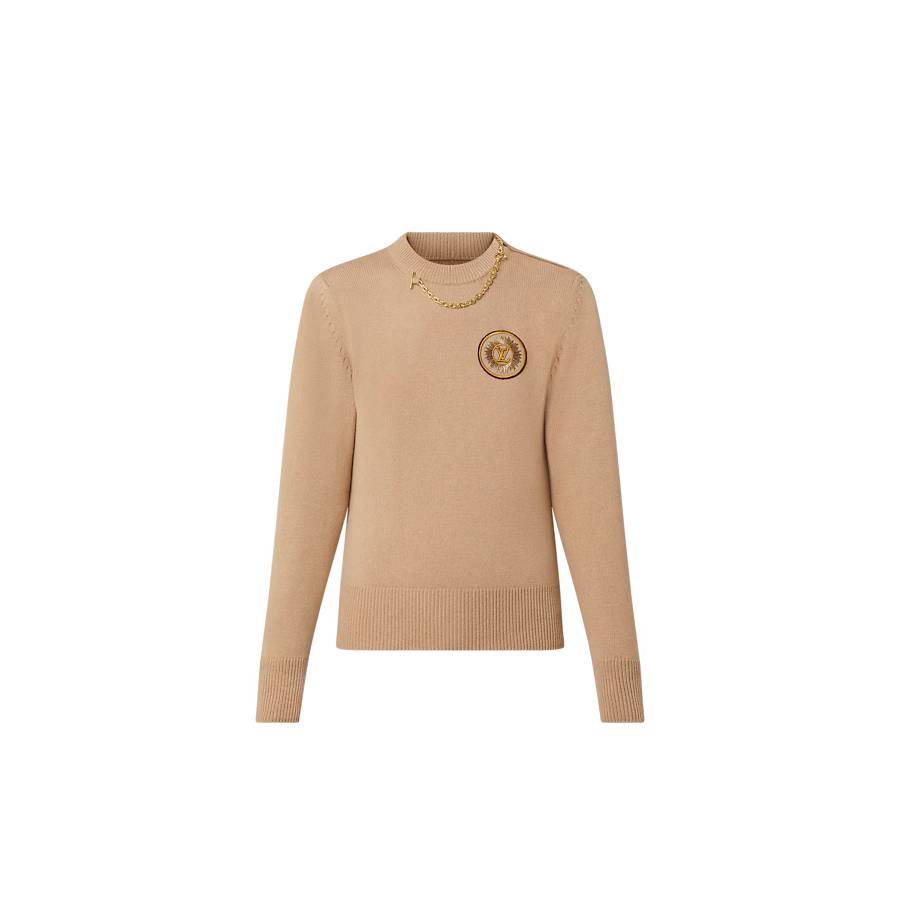 An essential Louis Vuitton style. This pullover is crafted from a comfortable, cozy cashmere knit for an elegant everyday look. One shoulder is embellished with the House’s refined zipper-and-chain detail, which can be worn open for a contemporary twist. An embroidered LV patch completes the look with a chic signature.