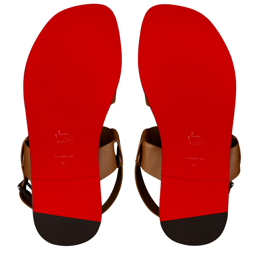 The Chambeliss Sandal Strass features a sleek silhouette. This refined shoe is entirely crafted from Cuoio brown calf leather. A testament to the creativity of Maison Christian Louboutin, it features a wide band adorned with a metal piercing and an ankle strap with a metal clasp. This sophisticated summer model has a padded insole.