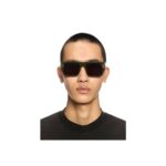These acetate sunglasses feature an oversized rectangular silhouette with a straight top bar and geometric frame. They are completed with milled sections that wrap onto the temples to create a matte contrast and inset arrow logo plaques on the arms. Made in Italy.