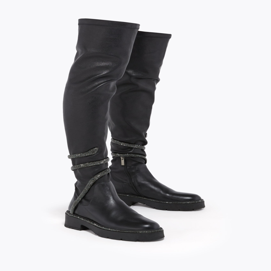 Meet the Cleo cuissard boots. Crafted from soft leather, this over-the-knee style features a chunky lug sole and the emblematic sparkling serpent. Designed for everyday wear, it strikes the perfect balance between bold style and all-day comfort.
