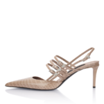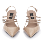 Show your fashionable side with these leather sling-back shoes. Check out the details.