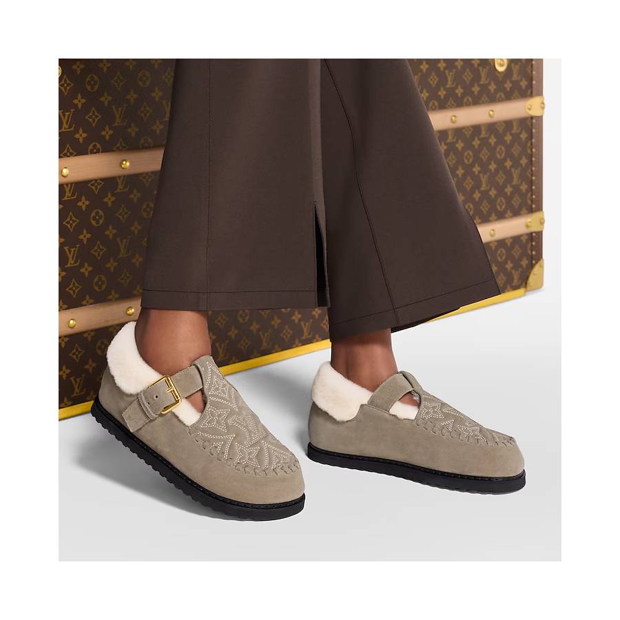 The Colorado comfort Mary Jane comes in velvety suede calf leather with a snug shearling lining. The vamp is embroidered with the Louis Vuitton Monogram pattern, while the strap is adjusted with an engraved, gold-toned buckle. Both on-trend and easy-to-wear, this style is finished with a lightweight micro outsole.