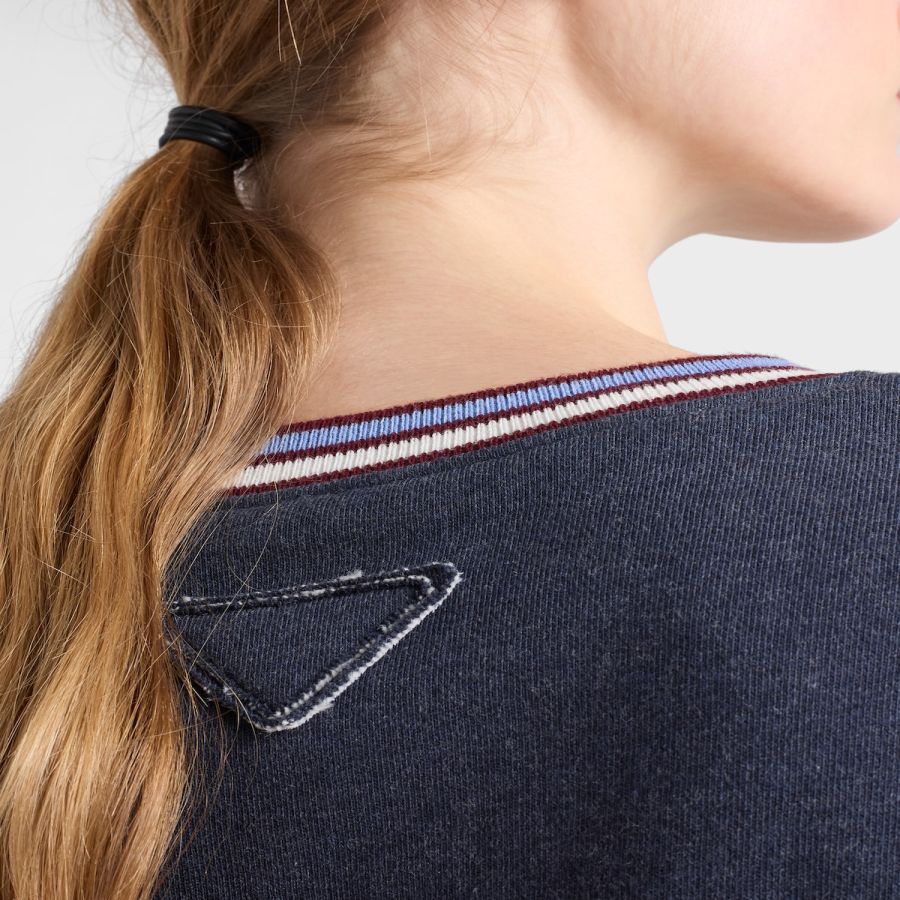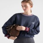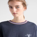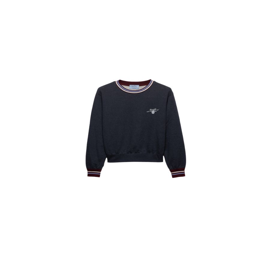 An oversized silhouette adds interest to this crew-necked sweatshirt with contrasting details: the Prada logo on the front and the ribbed knit trim create a refined, hybrid mood for the style.