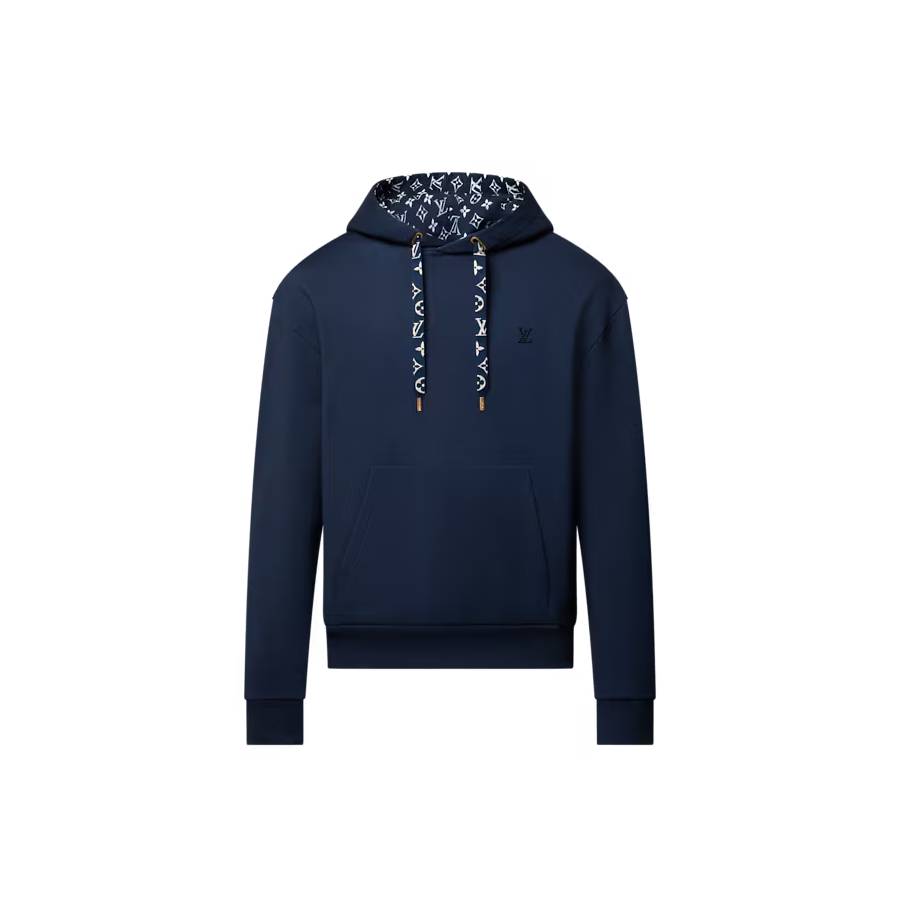 This casual hoodie in refined dark blue tones is distinguished with a crisp white printed Monogram motif inside the hood and on the ribbon-like draw cords. Golden eyelets and cord ends add a sophisticated accent. Crafted from pure organic cotton, this piece is ideal for traveling and makes a versatile staple for relaxed everyday looks.