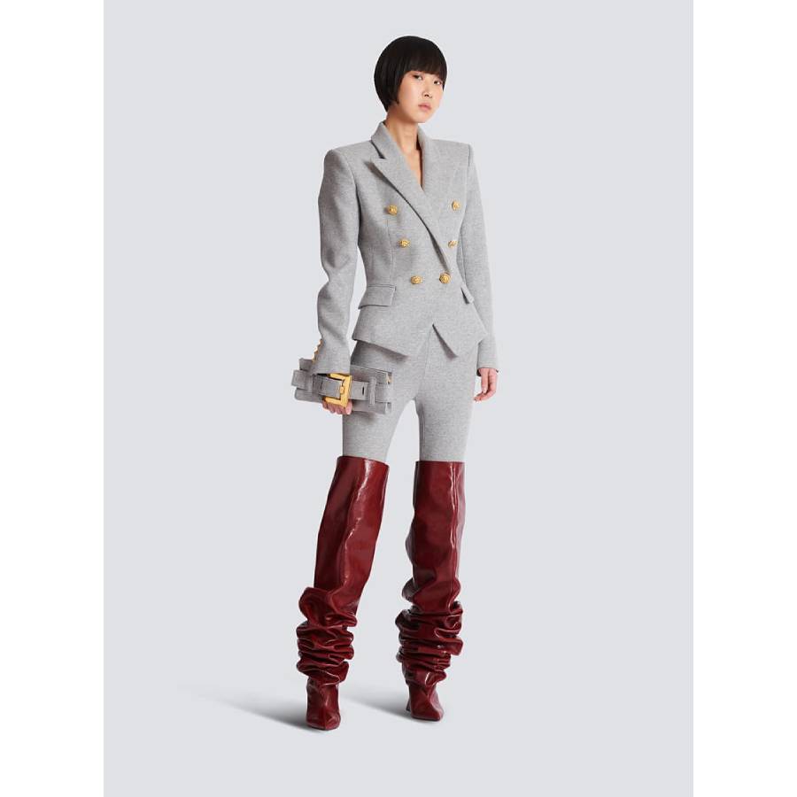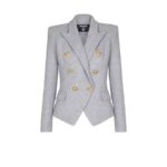 - Double-breasted fastening with two buttonholes