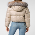 Home Women Clothes Coats & Jackets Cropped Down Jacket with Fur Collar Monogram Strass