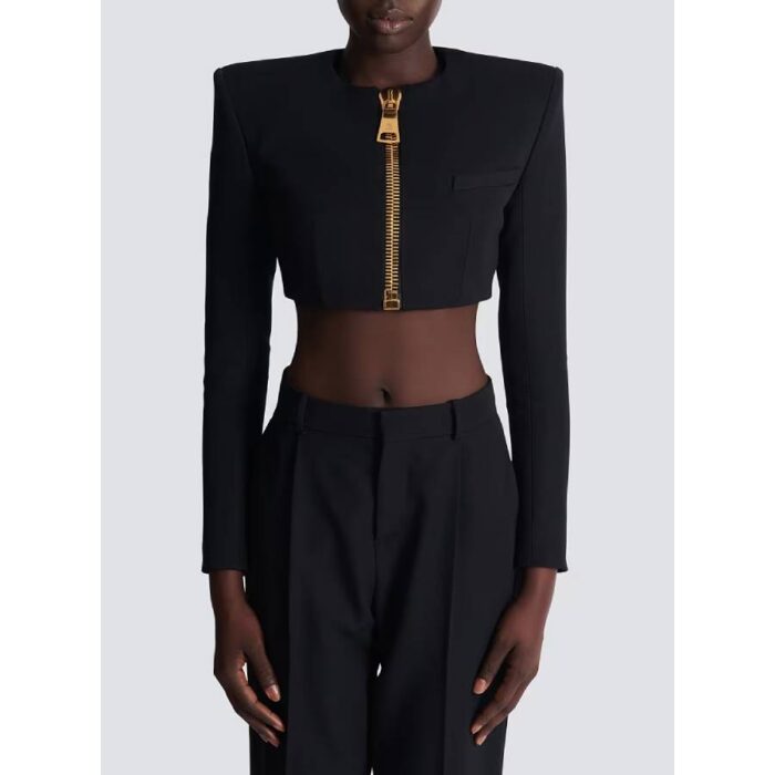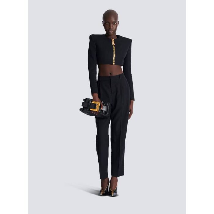 - Long sleeves ending in a large zip with a Balmain Paris-engraved slider