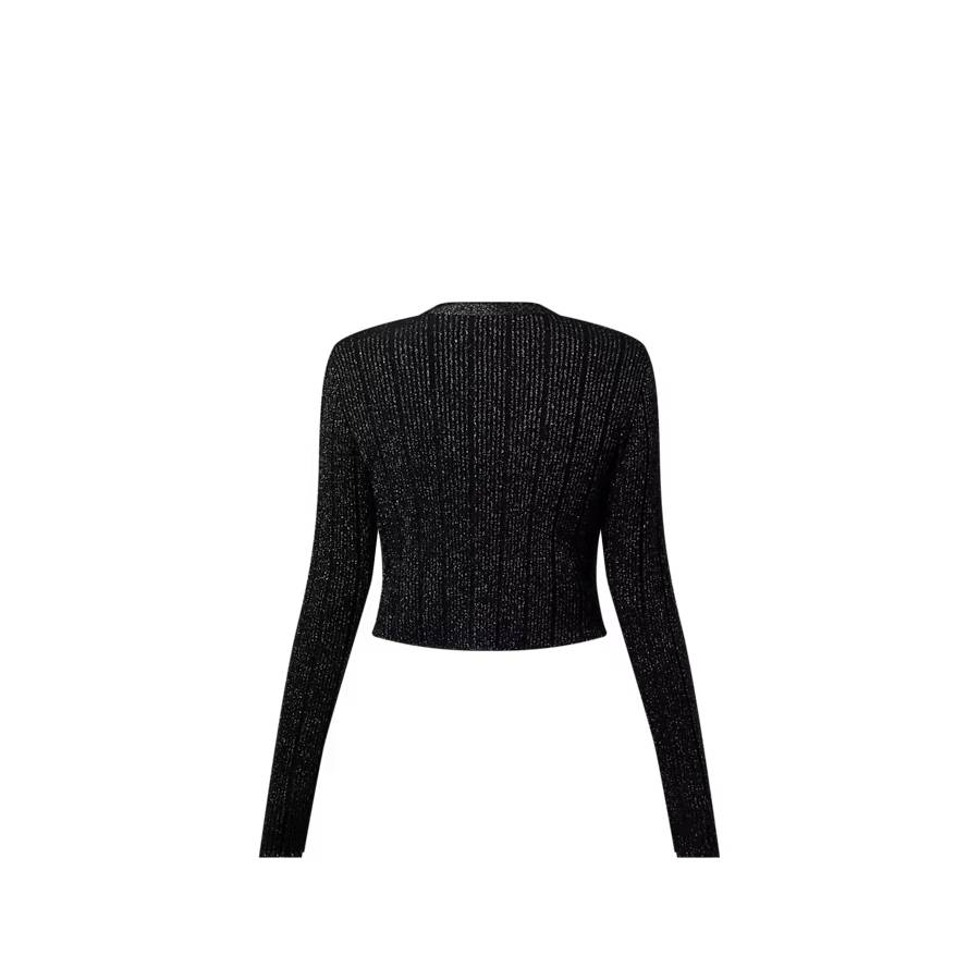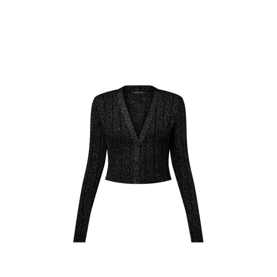This spirited cardigan from the LV Ski collection is chic and sparkly in a XX knit accented with light-catching lurex threads. It skims the figure in a flexible ribbed finish, crafted in a cropped shape with an elegant V-neckline that is fastened at the front with tone-on-tone buttons.