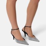 These slingback pumps in crystal-embellished calf leather are set on a stiletto heel, featuring a pointed toe and the signature La Medusa hardware on the uppers.
