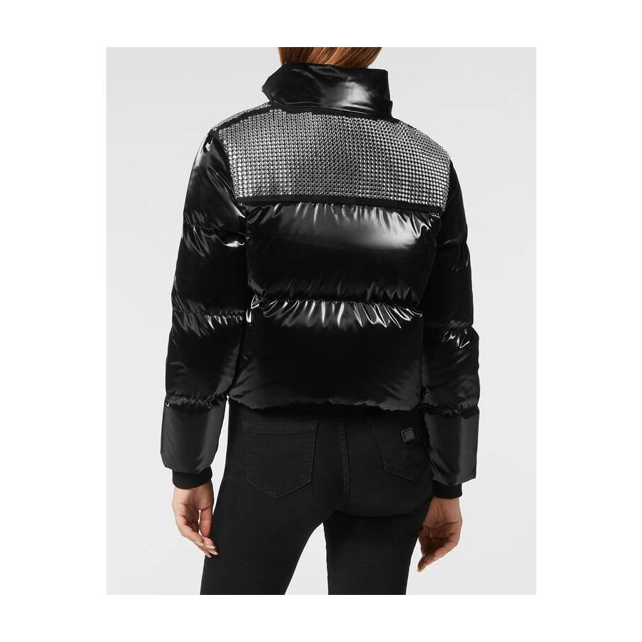 We put together sport and glam style in one garment that can perfectly express your own personality. Check out this high-shine padded nylon down jacket with defining details.