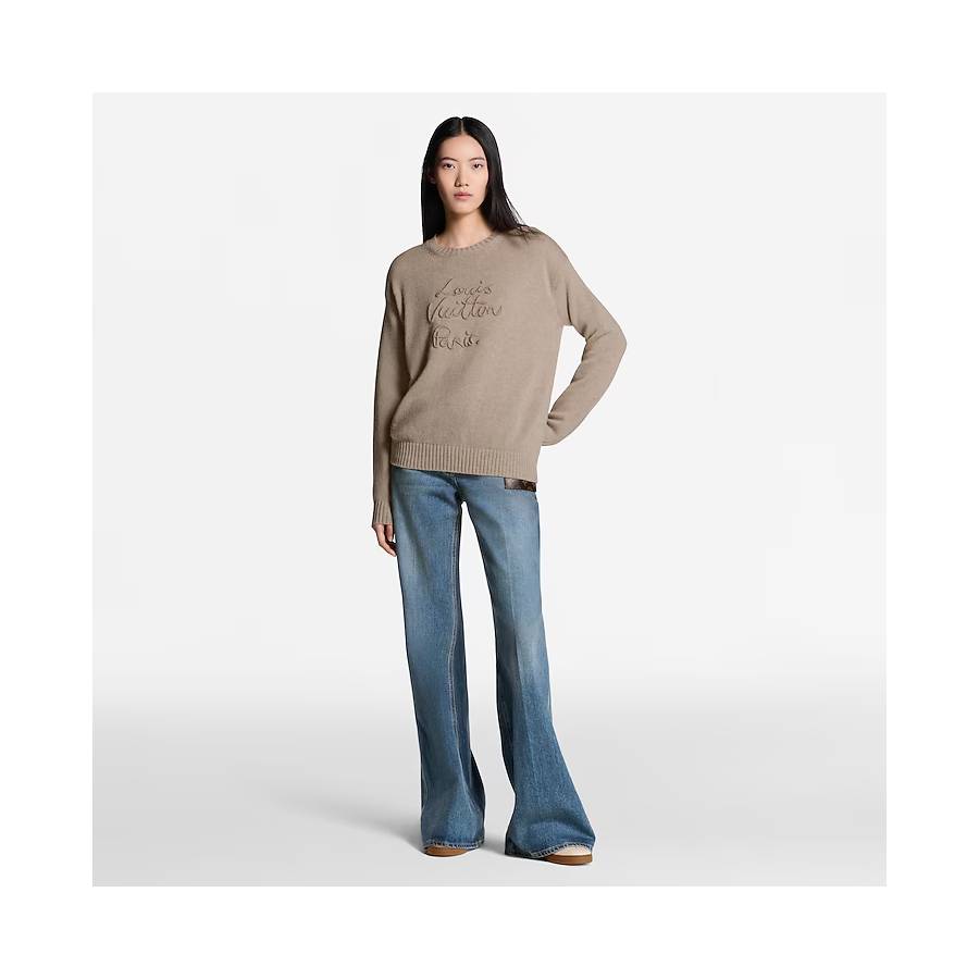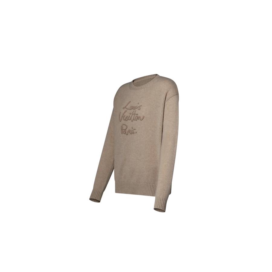 This pullover has elevated everyday appeal in a soft, warm cashmere knit in a timeless shade. The cuffs and waistband are highlighted with chunky ribbing, while the chest is embellished with a cursive Louis Vuitton Paris signature in tone-on-tone embroidery for an understated House touch.
