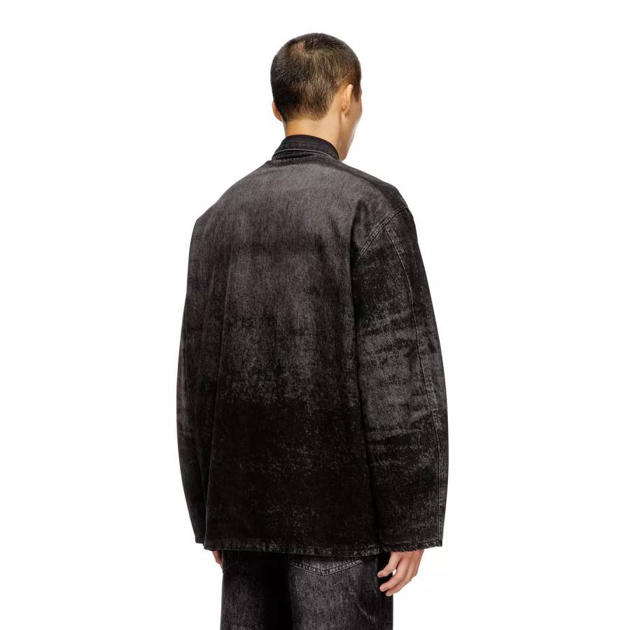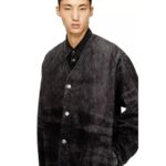 Clean-cut and relaxed, this all-gender jacket is fresh from the Fall Winter 2025 Runway Show. The shape is characterised by dropped shoulders and wide, extra-long sleeves, a V-shaped neckline and branded metal buttons.
