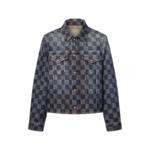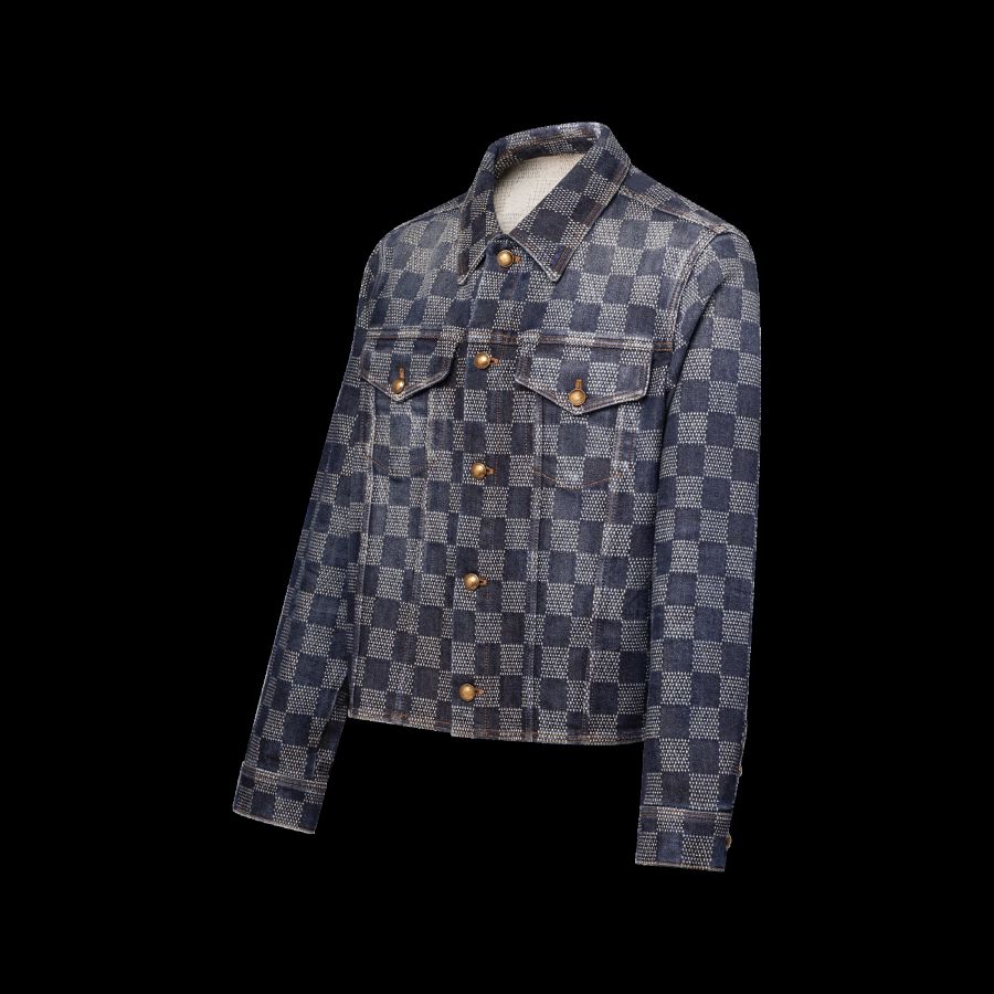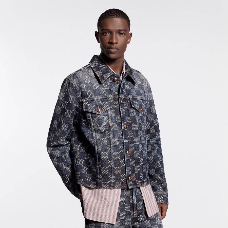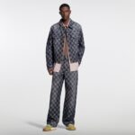 This graphic denim shirt plays with the trucker silhouette to make a versatile layering piece. It is adorned with an allover Damier jacquard and washed for a softened vintage effect. Aged gold-toned metal buttons embellish the fastening and pockets while the Spring-Summer 2026 show’s LV Legacy signature adorns a pocket detail on the back. Matching pants make a standout set.