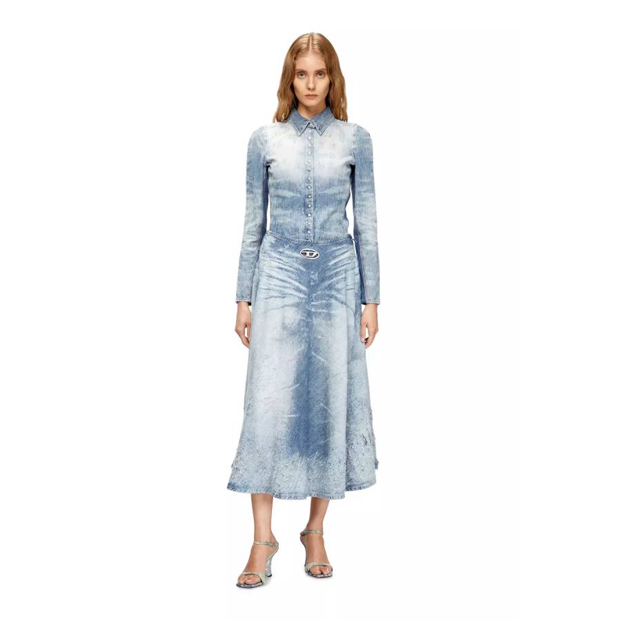 This light blue fix denim is inspired by Japanese honeycomb fabrics. The texture and colour of the jacquard weave are enriched through stone washing, nebulised bleach effects, and laser technology. Distinctive floating threads and natural abrasions emerge during the process, enhancing the unique, distressed finish of this Runway wash.