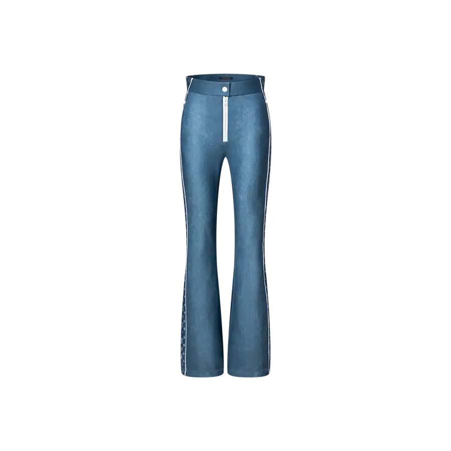 Crafted from this season’s innovative technical nylon, these slim-fit softshell ski pants are both chic and functional for winter sports. The fabric is breathable, wind-resistant and flexible for elevated comfort on the slopes, while the denim-look print introduces a playful trompe l’oeil effect. Monogram accents sign the outer legs, complete with graphic contrasting piping. The front is fastened with a snap button and an exposed zipper for a retro feel.