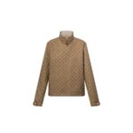 This jacket makes a chic signature statement in the House’s iconic double-face wool-silk blend featuring an allover Monogram motif in soft seasonal tones. It is cut with clean lines in a casual, hip-length straight shape with a high neckline. The front is fastened with an exposed zipper, while the cuffs can be adjusted with tonal leather tabs.