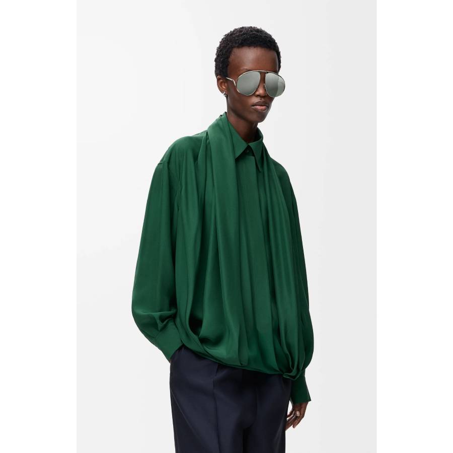 Shirt in lightweight matte silk poplin featuring a balloon silhouette with draping at the front.